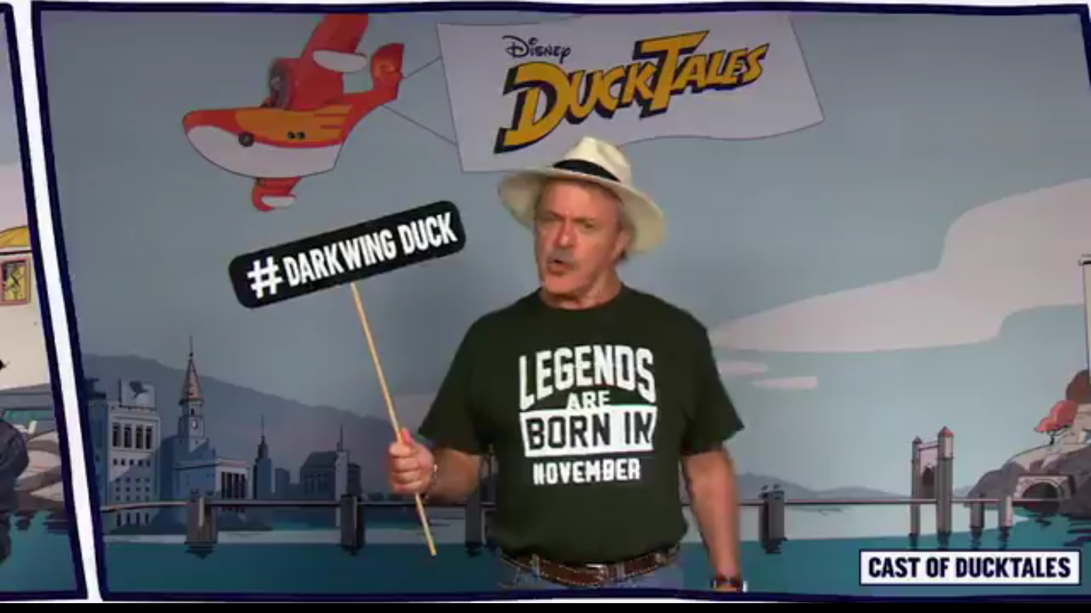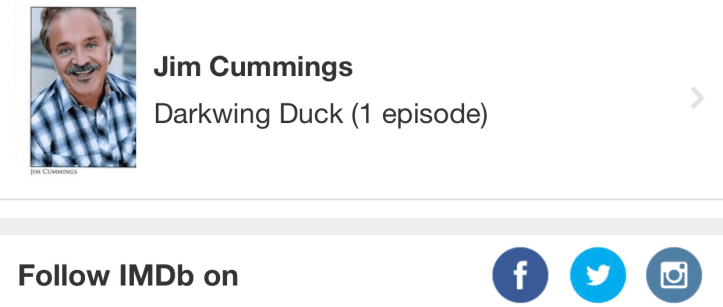 Then in September Disney XD released a video on YouTube that included Jim holding a #Darkwing sign with a caption designating him as a cast member of the show. DuckTales Theme Song Supercut