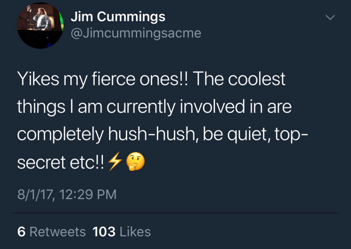 1. I’m pretty sure the person who was most excited about Jim Cummings returning as “The Terror that Flaps in the Night”, is Jim Cummings himself!