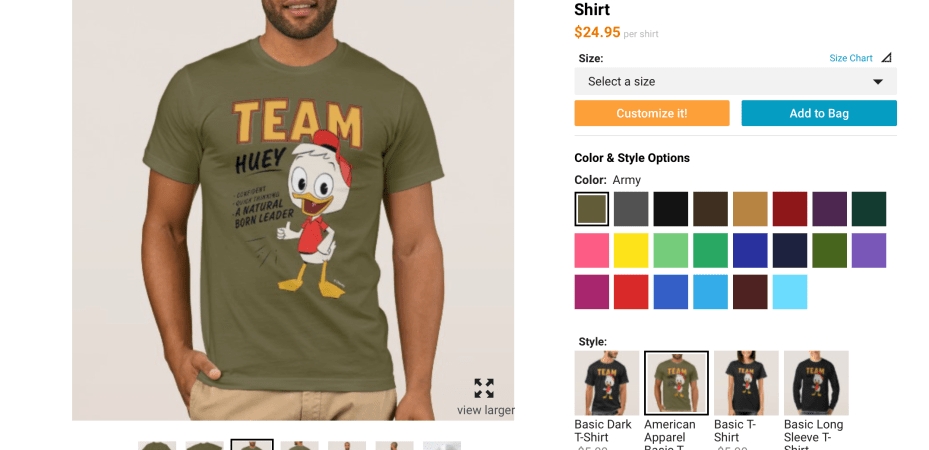 There’s some pretty cool stuff. No toys or anything like that, but plenty of shirt and drink ware options. Everything listed can be customized. So if you like a design but don’t care of the color you can select a different color or even the type of shirt.