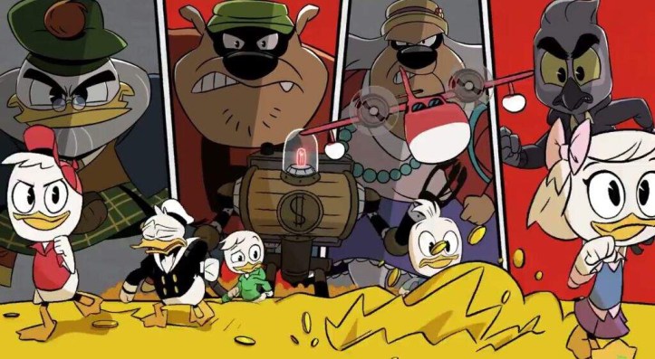 Mark Beaks can be seen in the show’s opening title sequence chasing after Scrooge McDuck’s Number One Dime along with many villains from the show.