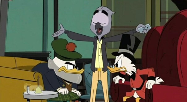 Mark Beaks made his debut on DuckTales 2017 in an episode that includes his name… and that is very fitting for the character. The episode begins at the Duckburg billionaires club. Mark Beaks interrupts Scrooge McDuck and Flintheart Glomgold as they are in the midst of a “vision based battle of wills.” When Huey realizes Mark Beaks is there he is very star-struck by the tech genius. Beaks invites both Huey and Dewey to apply for an internship at his company, Waddle.