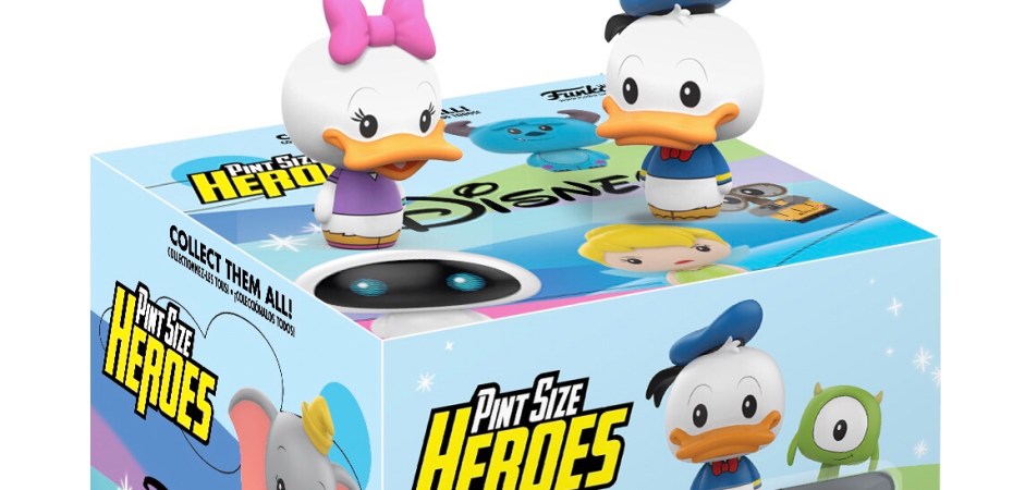 Funko released Disney Series 2 Pint Size Heroes on March 1st 2018. Disney Series 2 includes two ducks! Donald and Daisy Duck headline a lineup of 18 new Disney Pint Size Heroes figures. Disney Series 2 includes a base set of 12 figures, 3 Hot Topic exclusives, and 3 Toys R Us exclusives. The following 18 Disney characters made up the lineup for Series 2: Donald Duck, Daisy Duck, Wall-e, Eve, Mike Wazowski, Sulley, Boo, Dumbo, Peter Pan, Captain Hook, Tick-Tock Crocodile, Tinkerbell, Lilo, Stitch, Scrump, Baymax, Armored Baymax, and Hiro.