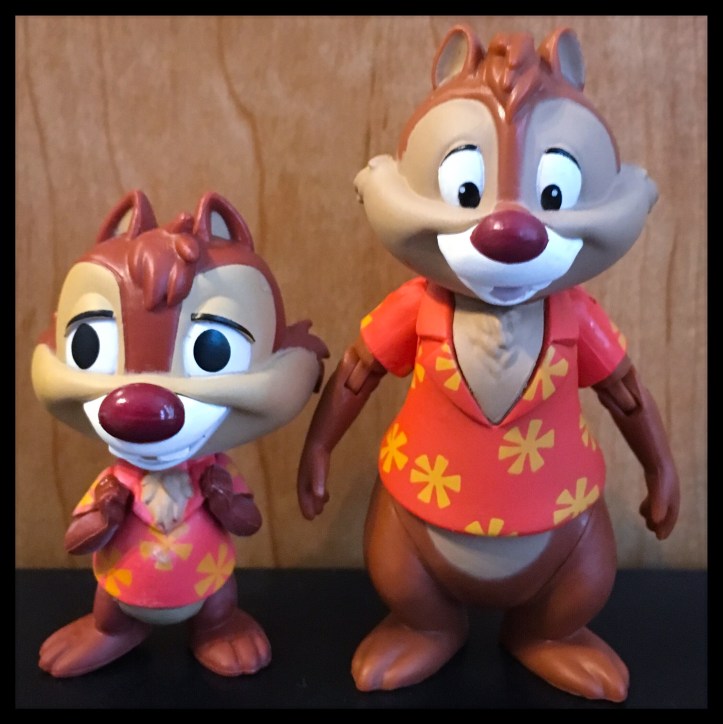 This is the second Dale Rescue Rangers figure that was released by Funko last year. The other release was from the Disney Afternoon Mystery Mini series. Here is a side by side comparison of those two figures. Funko has released the Non Rescue Rangers version of Dale and the Kingdom Hearts version of Dale in their POP! Figure line. The regular version of the Dale Pop! Figure was flocked. There is a rumor of a full line of Rescue Rangers figures being released later this year.