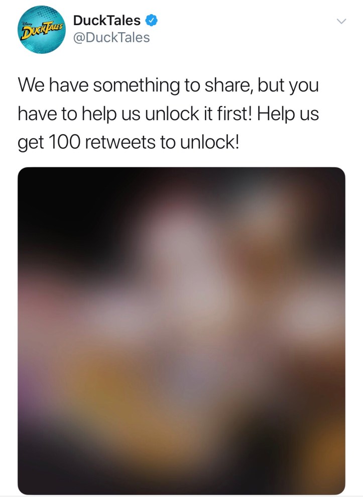 It took DuckTales fans all of 6 minutes to get the 100 retweets, but there was no response from the Twitter account. Fans were antsy all night, and the response that came the next day was worth the wait.
