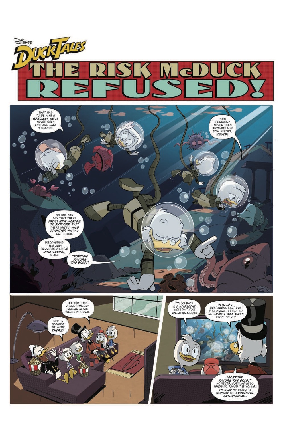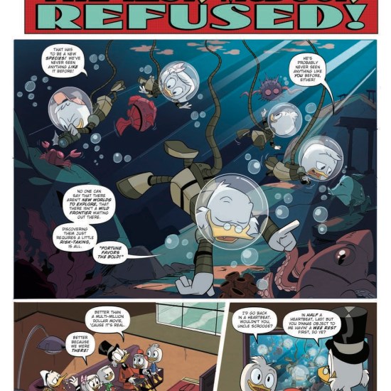 Like the last issue, this issue has some problems. The stories from the description are not the stories in this comic. It seems the shuffling around continues to impact the book. DuckTales #9 includes two great stories that continues to focus on Scrooge. Story A is “The Risk McDuck Refused!” and Story B is “The Frightful Family Fishing Trip!”