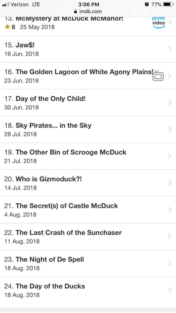 After a comment by WordPress user bernieblogtest yesterday on the recent blog “DuckTales Season One Episode Titles on IMDb!” we realized the premiere dates for the new episodes have changed on IMDb… I am at work and can’t write up a correction just yet, but here is a screen shot of the changes. It looks like the rest of Season One will air well into August!
