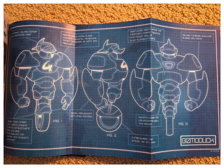 It is a very detailed poster of GizmoDuck blueprints. I wonder if Gyro knows that Fenton gave them these blueprints to use in the book.