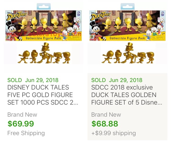 Last week, it was revealed that a PhatMojo set of DuckTales figures (Scrooge McDuck, Webby, Huey, Dewey, and Louie) in a gold variant paint job and a limited edition of 1000 would be available at SDCC for $29.99.