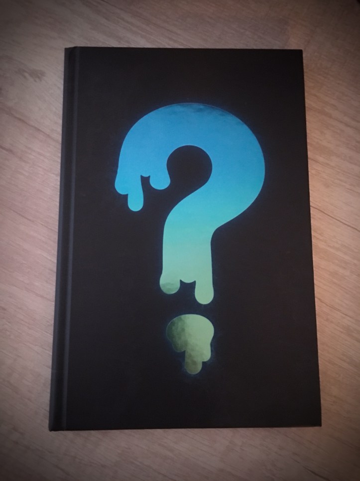 If you take the slip jacket off of the book, the book is black with a question mark on the front cover.