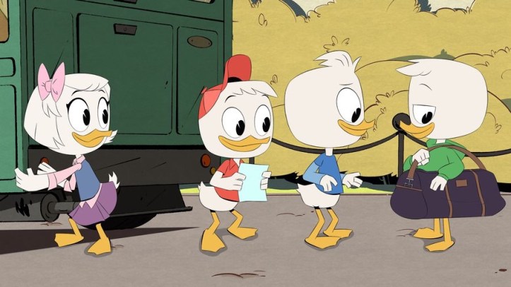 Ok, sorry that was a lame joke… this image may be the least spoilerish image they could give us. We know all four characters will be in the next episode. We know from the promo that ran after the Castle McDuck episode that the kids would be stuck on the Sunchaser while trying to solve the mystery of Della Duck. No doubt the bag being carried by Louie holds the clues they will be piecing together.