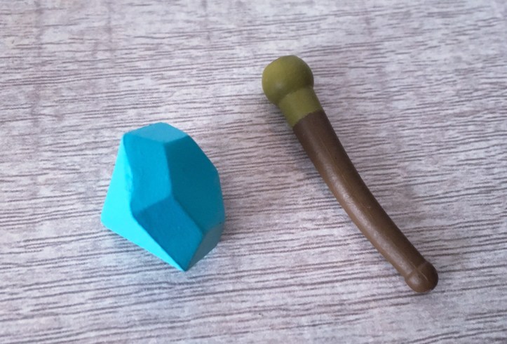 Each of the characters in this toy line come with accessories. Flintheart Glomgold comes with a cane and a giant blue diamond.