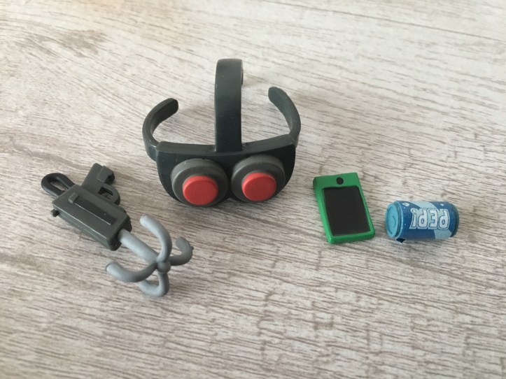 Webby and Louie come with the following accessories: Infared Goggles, Grappling Hook , Louie’s Cell Phone, and PEP! Can.