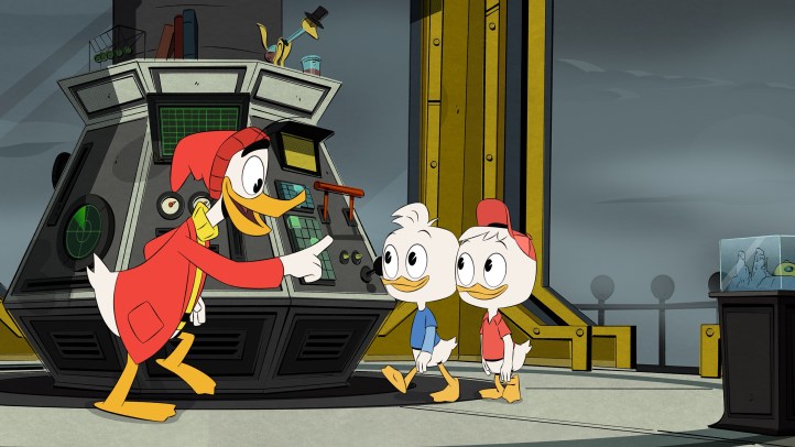 We do not know much about this version of the character. The image raises a few questions about the episode. Huey and Dewey are with Fethry in a very industrial looking building. There is a strange hexagonal terminal in the center of the room… there also appears to be an aquarium (or terrarium), and one of those drinking bird toys… curious.