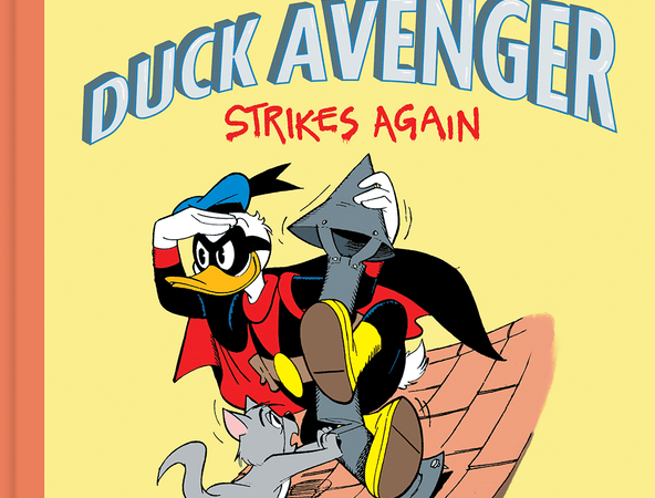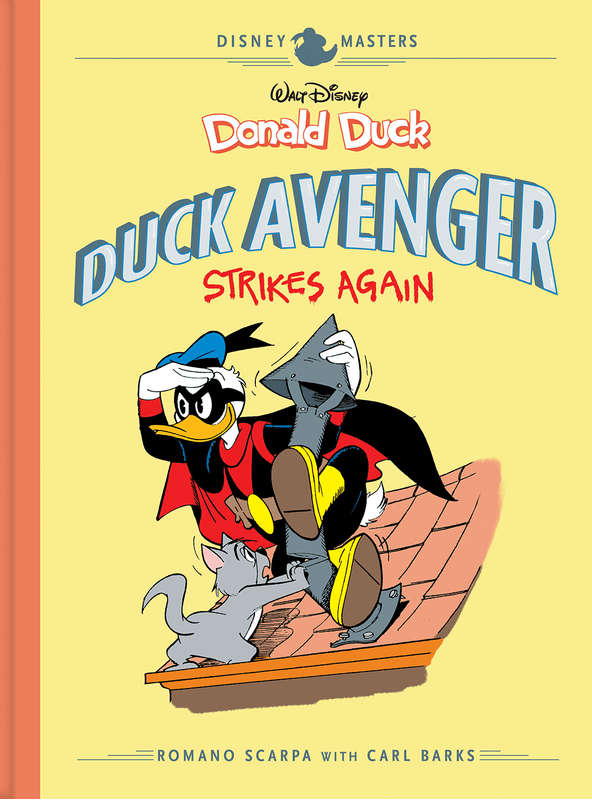In October, we found out that Vol. 8 of Fantagraphics Disney Master’s series of books would be titled Duck Avenger Strikes Again. We now have a Cover image for the book as well as some information on what will be included.
