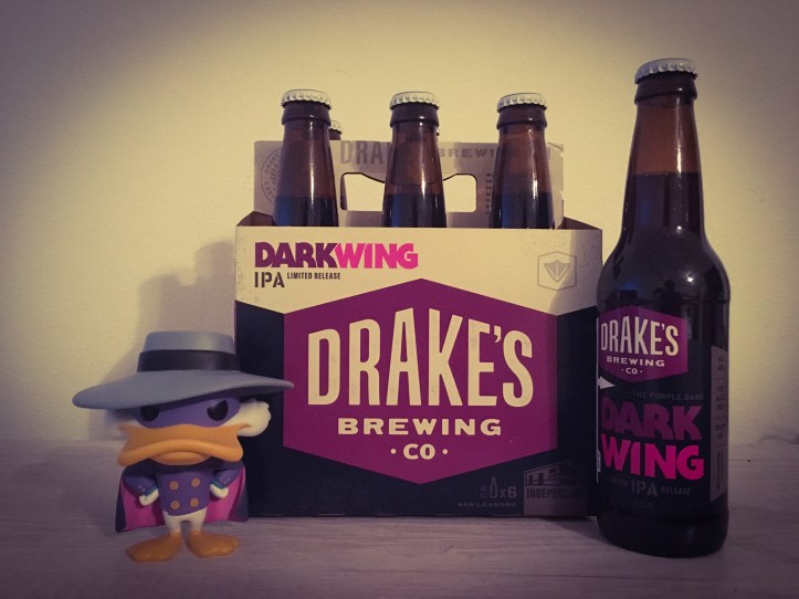 I did my research and found out that Dark Wing beer is made by an independent brewery called Drake’s Brewing Co. in San Alejandro, California. I made a new friend of DuckTalks with Brian from Drake’s Brewing Co., and he sent me a fresh six pack of Dark Wing Beer to showcase and sample and spread the good word of Drake’s and Dark Wing to our audience. It is a rough job, but someone has to do it.