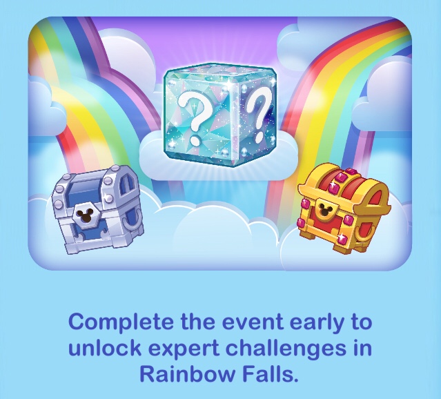 If you complete the event early, you will have a chance to play a bonus round called Rainbow Falls where you will have an additional chance to earn a diamond box which will have either Sora or Aqua in it.