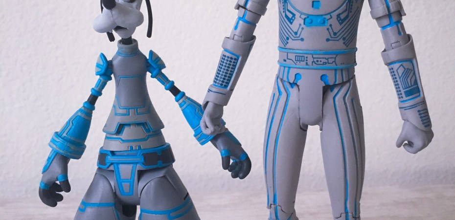 Goofy’s appearance is from the Space Paranoids Kingdom Hearts world inspired by the cult classic movie, Tron.