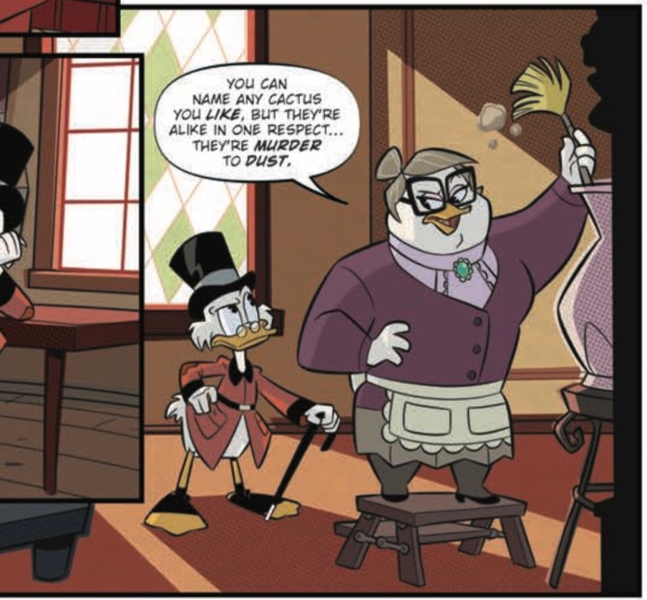 Uncle Scrooge finds himself “Marooned in Mystery Mansion”in this special two-part story! Can Mrs. Beakley save the day before things get out of hand?!
