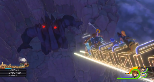 The demo, or Premium Showcase as it was called, was the same one that was offered at E3 in 2018. We could select from 2 worlds: Olympus from Hercules and Toy Box from Toy Story. I selected Olympus first, since the end of Kingdom Hearts 0.2 ~A Fragmentary Passage~ heavily suggested that this will be the first world you will play in Kingdom Hearts III. In this part of the demo, it’s more of a boss fight, between Sora and the gang and the Rock Titan. You get to climb the mountain as the titan is smashing it. The only keyblade you have equipped in this world is the Kingdom Key, and the only summon you can use is the Meow Wow dream eater from Dream Drop Distance. While you bash the baddies with your keyblade, the Command Style from Birth by Sleep returns. When you go into your second form, you can pull off familiar commands like Sonic Blade and Ars Arcanum. It looks like D-Links returned from Birth by Sleep, as Donald and Sora teamed up to do Donald’s Duck Flare and Goofy vaulted Sora up for an attack as well (I didn’t get to read what the attack was called). I saw that the Shotlock command returned as well from Birth by Sleep, but during my first playthrough I forgot how to do that. By my second playthrough, I remembered that I had to hold the Lock-On shoulder button.