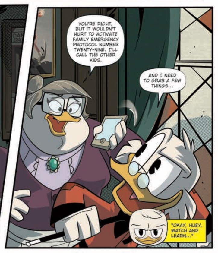 But that was them, and issue #18 is now! The comic eventually caught up to the series and we’ve been witnessing adventures the family has experienced between the episodes of the show. If you remember the season 2 pilot indicated the Duck/McDuck family had taken very few breaks between adventures.