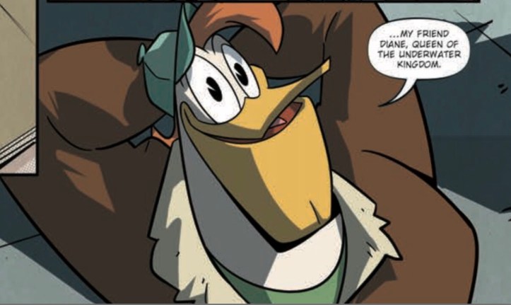 Issue #18 does find the family at home in Duckburg, and the story begins during a… hiatus from adventuring. Everyone is spread across town, but an unexpected visitor causes everyone to come together.