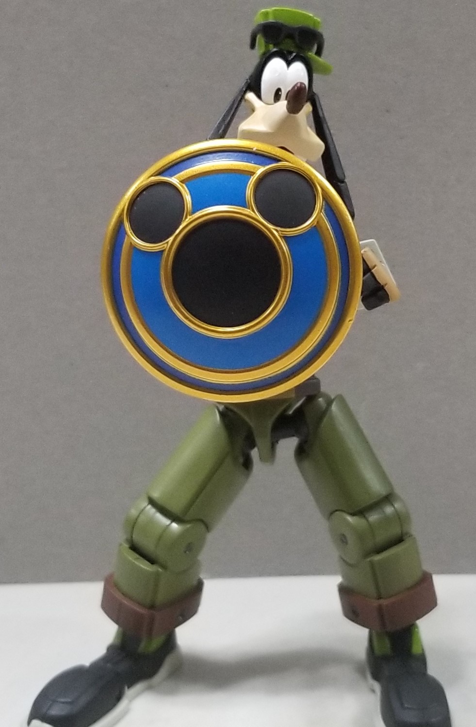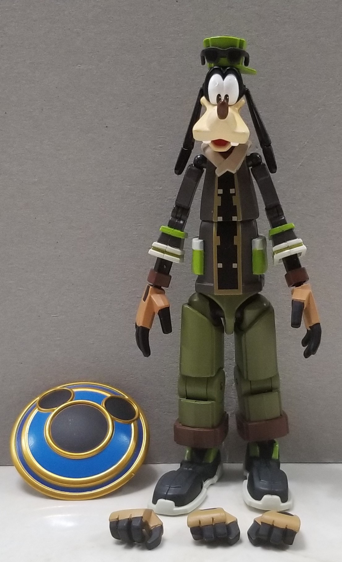 Like Donald and Sora, Goofy also comes with 5 hands: 2 open palms, 2 closed fists, and 1 right hand grip. He also comes with his starting weapon in the game, the Knight’s Shield.