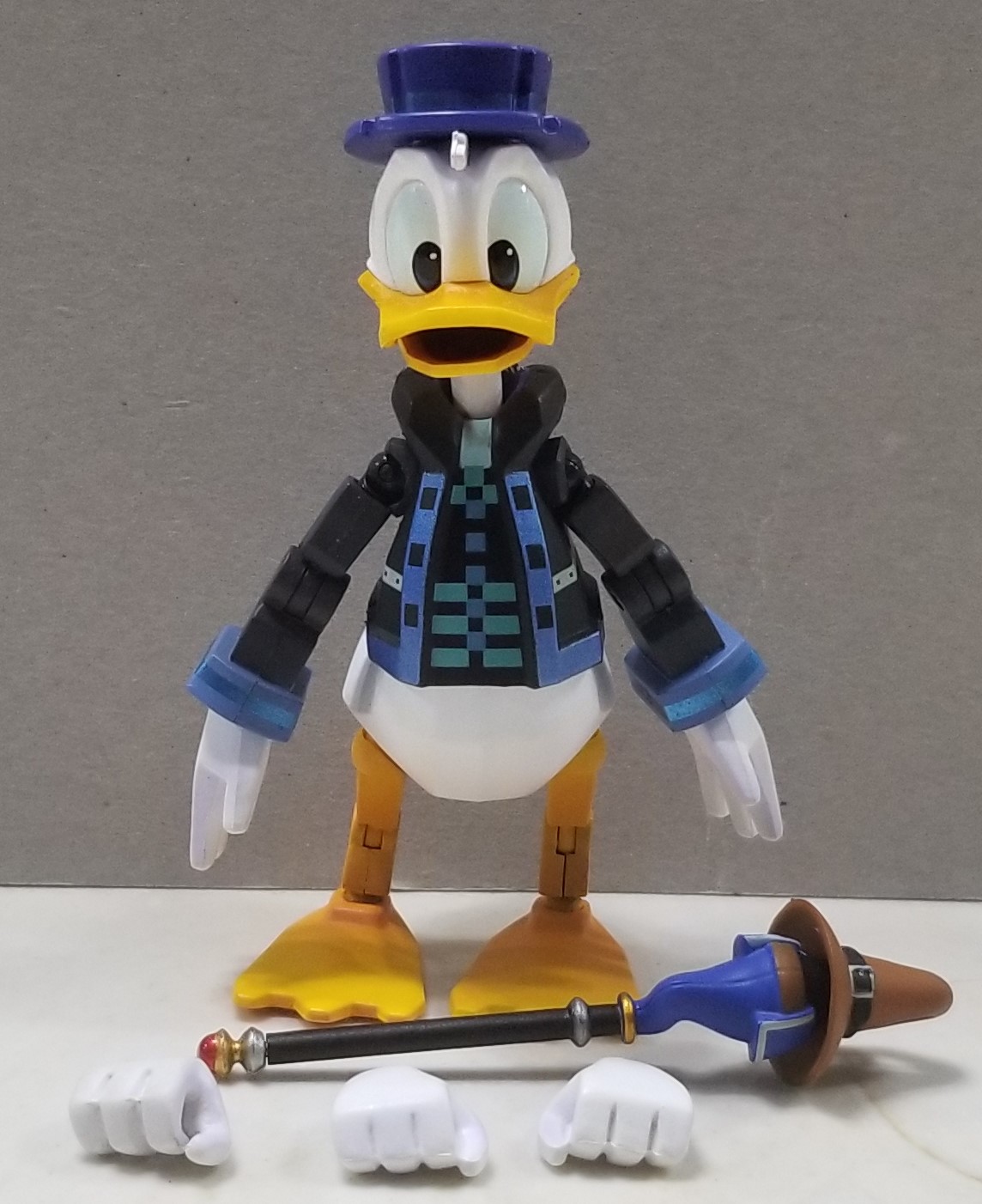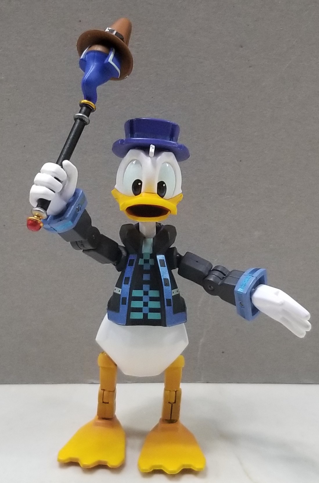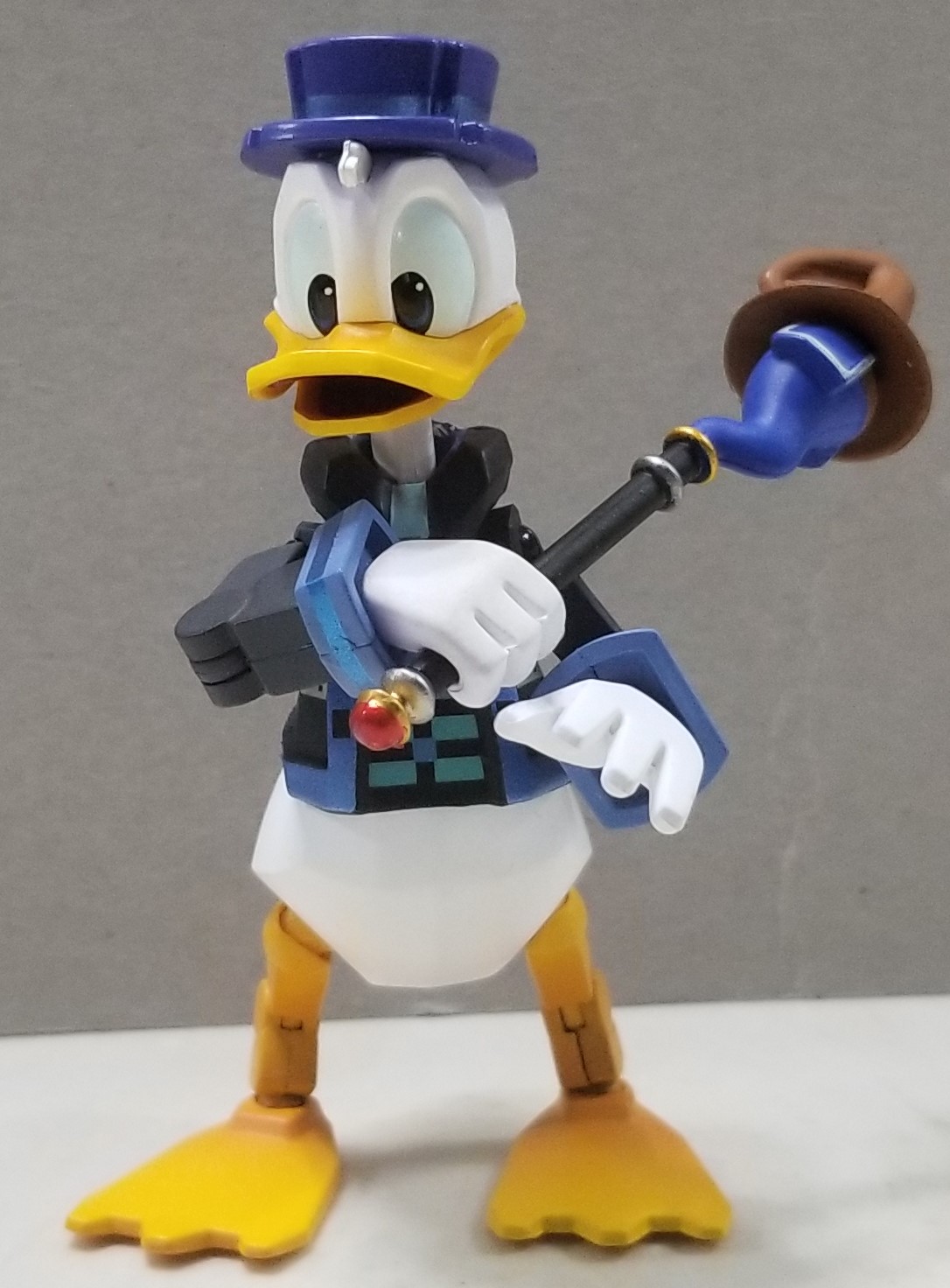 Here is our smallest figure, Donald. He also comes with a total of 5 hands, 2 open palms, 2 closed fists, and 1 right hand grip. He also comes with his starting weapon in all 3 Kingdom Hearts games, the Mage’s Staff.