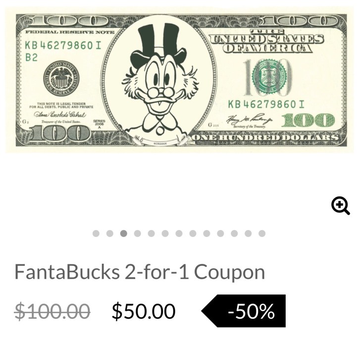 You know we like a good deal. Pirate Steven came across a great deal over at www.fantagraphics.com. They currently have a two-for-one sale going on for a $100 FantaBucks coupon. This means you can purchase $100 in FantaBucks for $50.