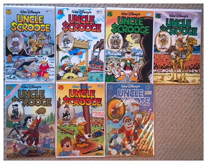 The 12 chapters that make up Scrooge’s life story were printed in Uncle Scrooge comics #285-296 by Gladstone from 1994-1996. The storyline is everything that happens to Scrooge from 1877-1947 all the way up to his debut in Carl Bark’s Christmas on Bear Mountain.