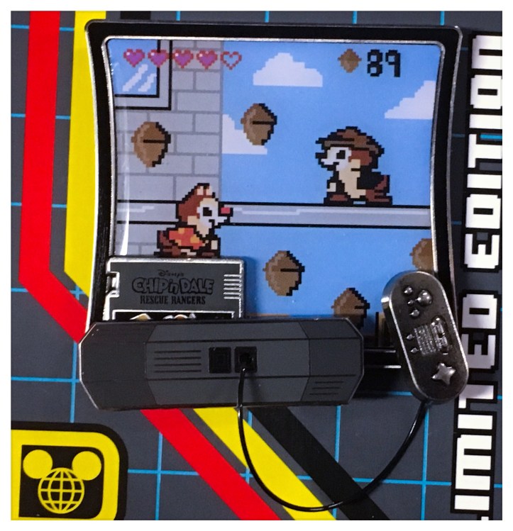 The Kingdom Consoles pin series has focused on games that were released in the NES and SNES era. We have seen pins for The Little Mermaid (NES), Aladdin (SNES), and The Lion King (SNES). I just knew we would see some pins for the Classic Disney Afternoon NES games, and we got our first one with today’s release (4/11), Chip ‘n Dale Rescue Rangers. Darkwing Duck will be released in May. Then we would just need TaleSpin and DuckTales.