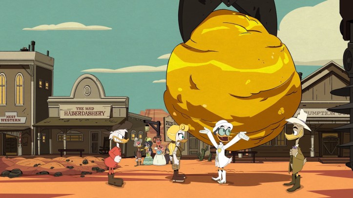 The reference that perked my ears was when Goldie was explaining to Rockerduck that he didn’t know who he was messing with when he tried to pull one on Scrooge McDuck. That’s when they referred to him as “The Buckaroo of the Badlands.”