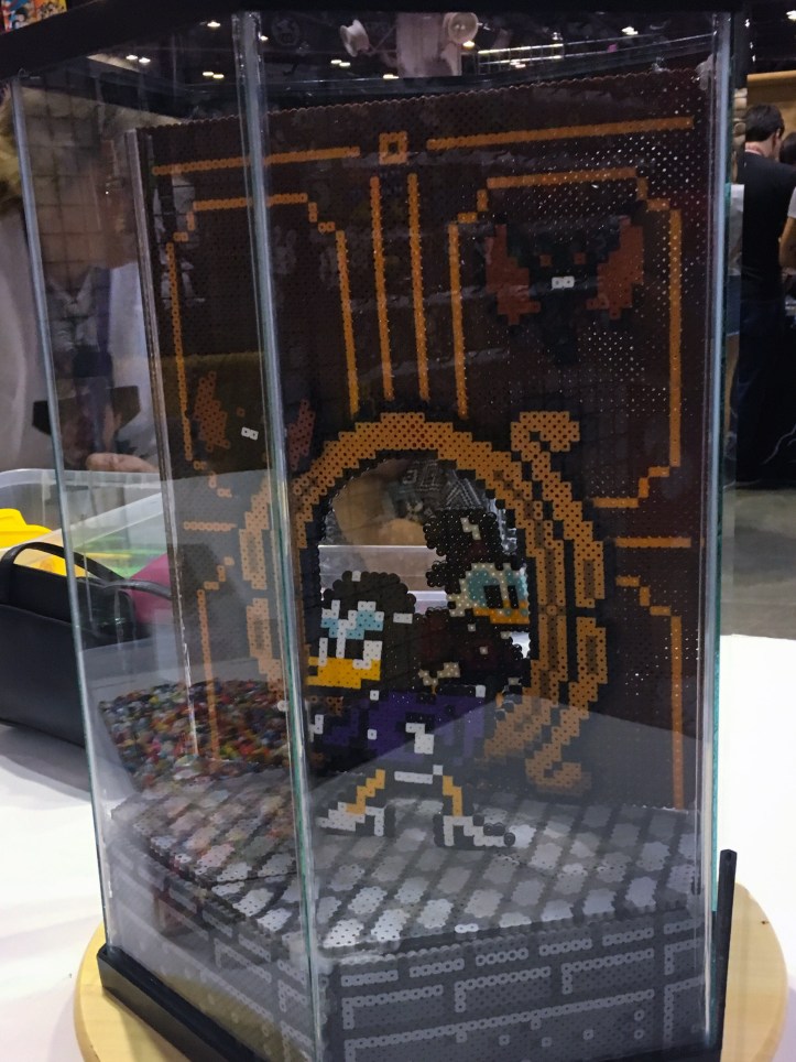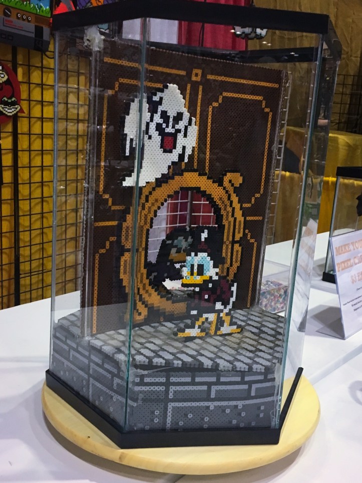 The first thing that I spotted was at a booth for Silly Rabbit Crafts. There was a perler bead recreation of a scene from the Transylvania level of the DuckTales NES game on a rotating turntable display that had Scrooge McDuck on one side and Magica De Spell on the other side. I could hear the song playing in my head from that level as a spun the turntable.