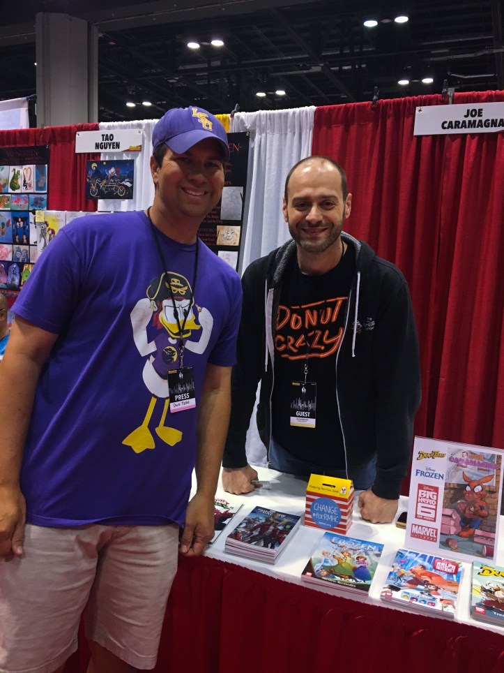 I got a chance to finally meet Joe Caramagna to geek out about DuckTales and comics. Joe is a very nice guy and extremely knowledgeable in the subjects of DuckTales, Comics, Donuts/Deserts, Hockey, and 90s Pro Wrestling. He has many comics on his table that he is written the stories for such as DuckTales, Frozen, and Wreck-It-Ralph . I would visit him early as his DuckTales comics usually go fast at shows. In addition to the comics that I had Joe sign three of the DuckTales comic trade paperbacks that feature issues that he worked on.