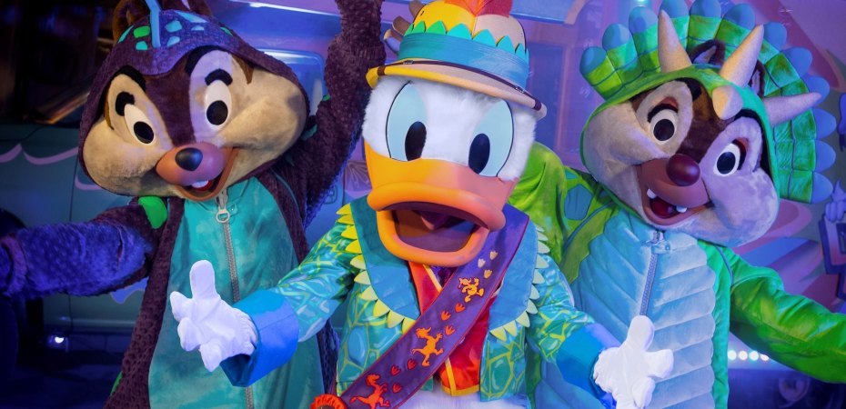 You’ll notice that one park may be mysteriously absent from the examples above, and it just happens to be one of our favorites ever since they introduced Donald’s Dino-Bash! a year ago. Now that it’s become a permanent staple at Disney’s Animal Kingdom, guests can meet Donald, Daisy, Scrooge McDuck and Launchpad year round.