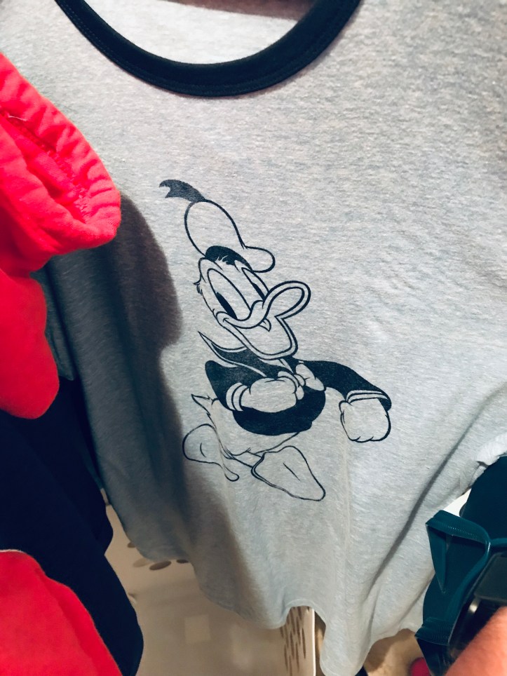 It was! Old Navy has a pretty groovy Donald Duck shirt. In true Donald fashion, I grabbed one and put another in front of the Mouse’s shirt.