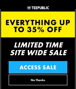 If you’ve been trying to decide how you can support the podcast and site, here’s your chance at a great deal. Teepublic has a 35% off sale on all merchandise and that includes our’s.