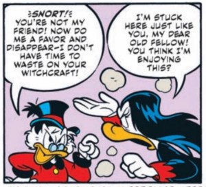 “Under Siege” puts Scrooge’s Money Bin front and center in the conflict. The story thrust Scrooge and Magica into a dire situation that requires they work together to escape the sinking bin, and then puts them against a common enemy.