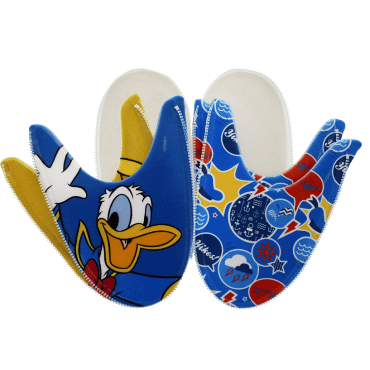 Happy Feet also sells multiple different Donald Duck themed Zlipperz. A Zlipperz is a slipper where you can zip off the top design and mix and match the top of the slipper by zipping on your desired design combination. Here are some of the Donald Duck designs available: