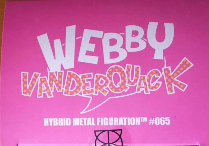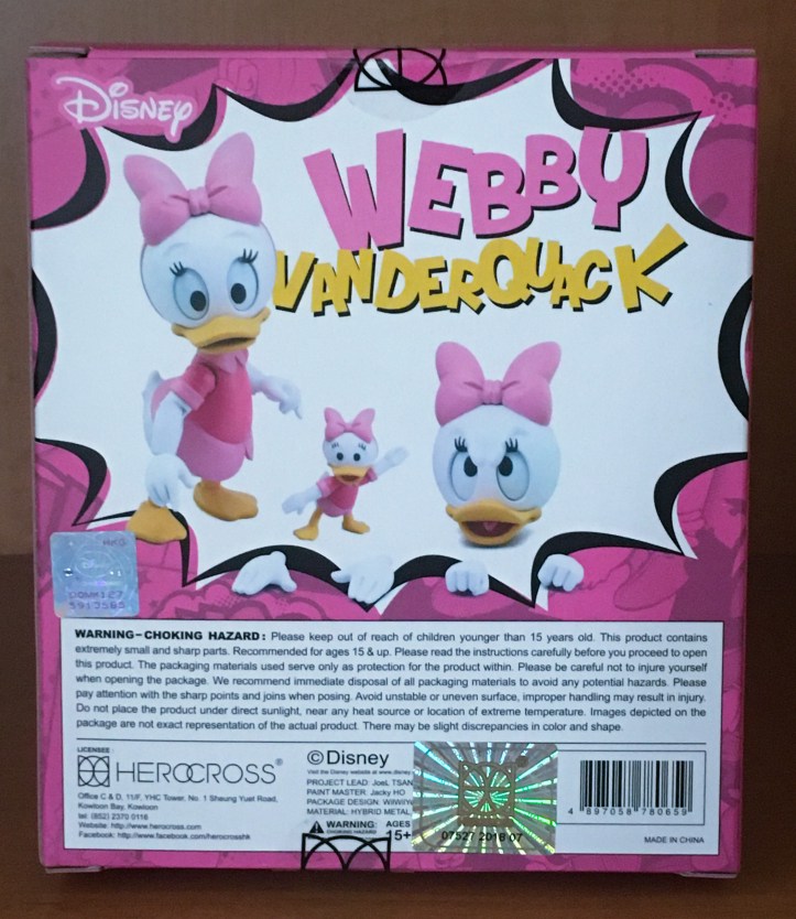 I love the format of Webby Vanderquack’s name on the front of the box and how the “k” makes a Webby face. The Scrooge McDuck Herocross figure box has a similar name logo on it’s box.