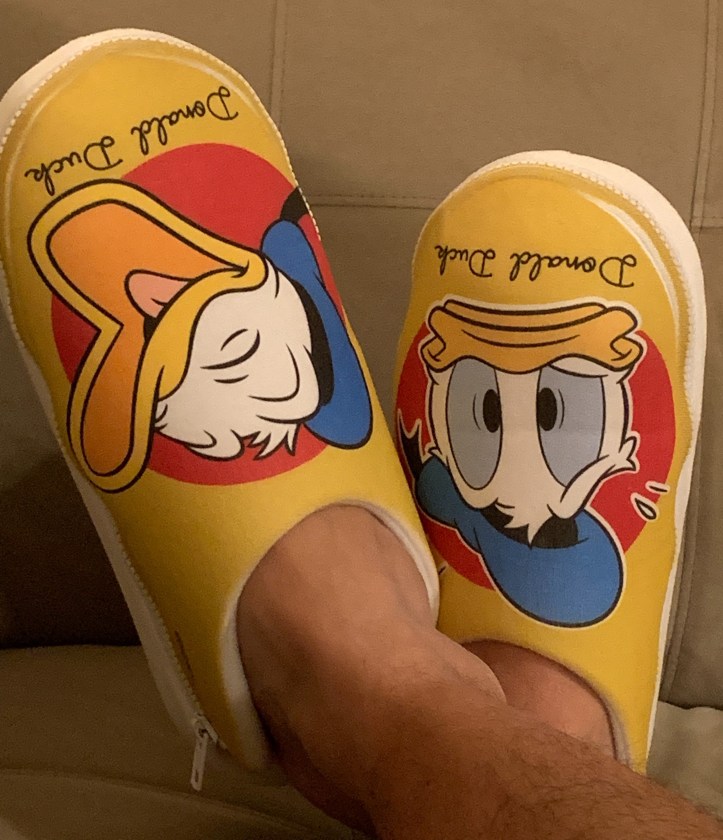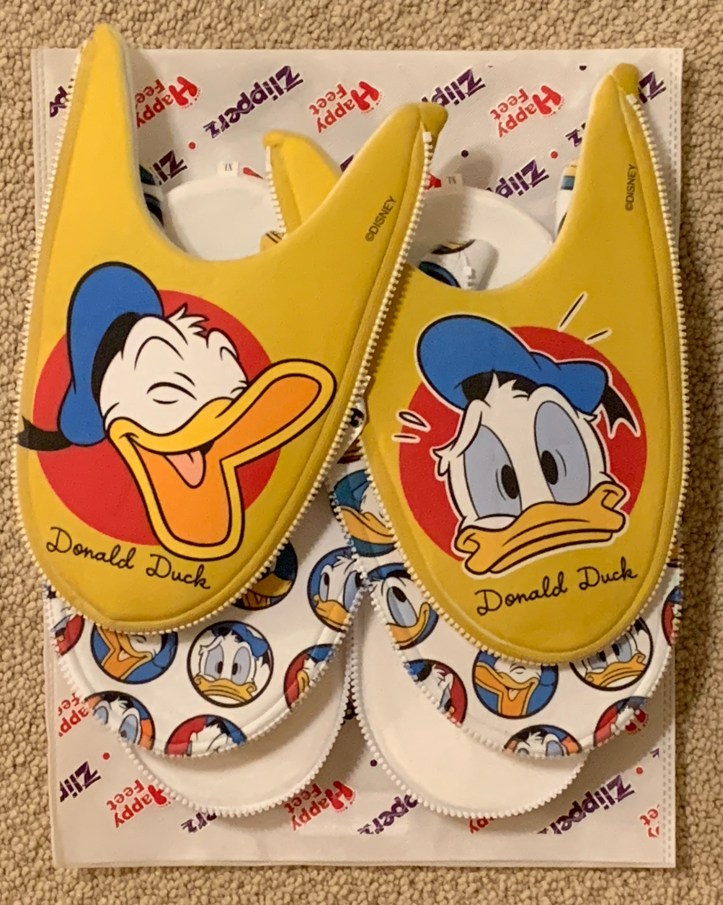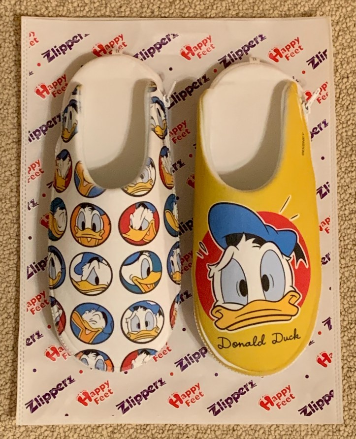 New friends of our blog and podcast, Happy Feet, sent us a pair of their Donald Duck Zlipperz to keep our feet happy and warm this holiday season. Thanks Happy Feet!