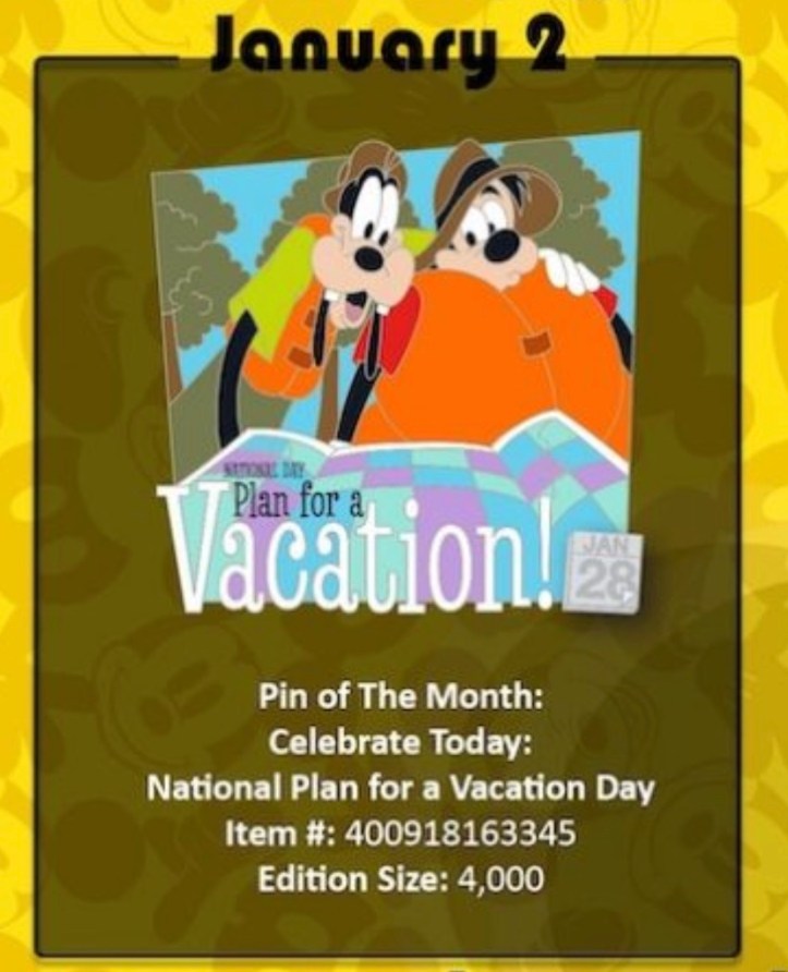 1/2– A Goofy Movie pin will be released for National Plan for a Vacation Day at Disneyland and Walt Disney World.