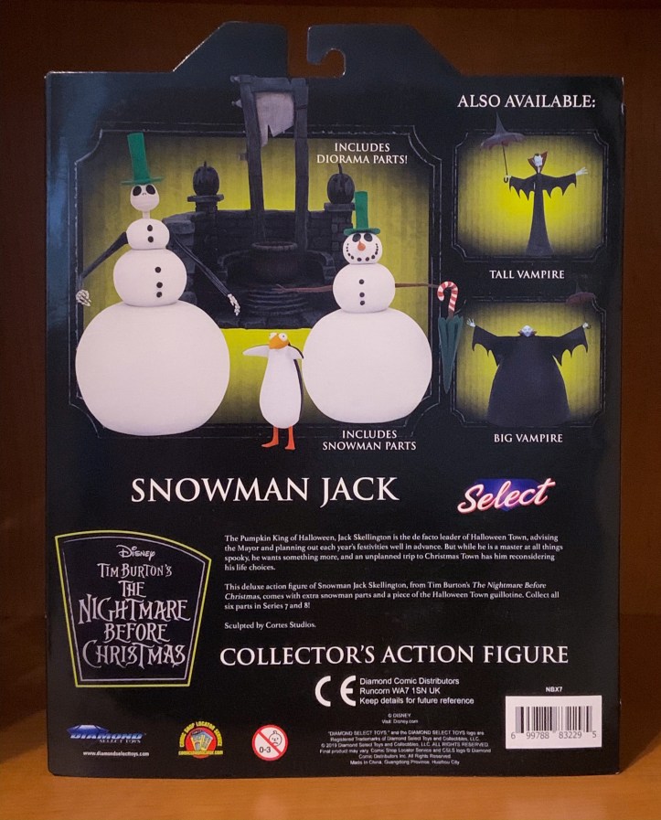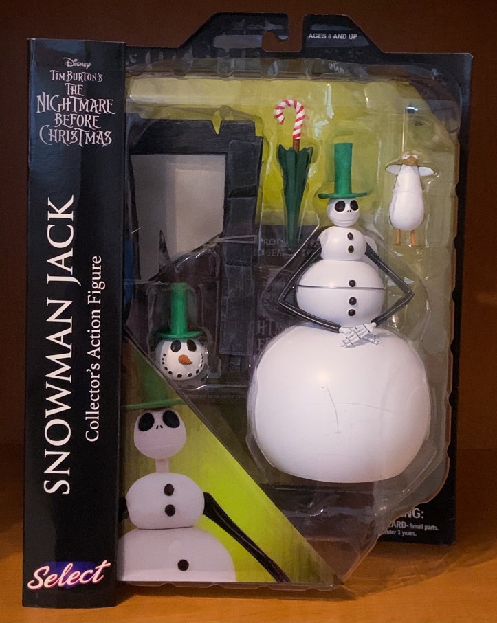There have been a few Jack Skellington action figures released in previous series from Diamond Select Toys. This time we are treated to Snowman Jack from the scene when Jack Skellington arrives in Christmastown, and he sees his first snowman.