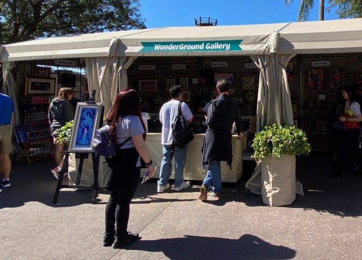 Pop up tents all over Epcot’s World Showcase sell all of the latest must own Disney art.
