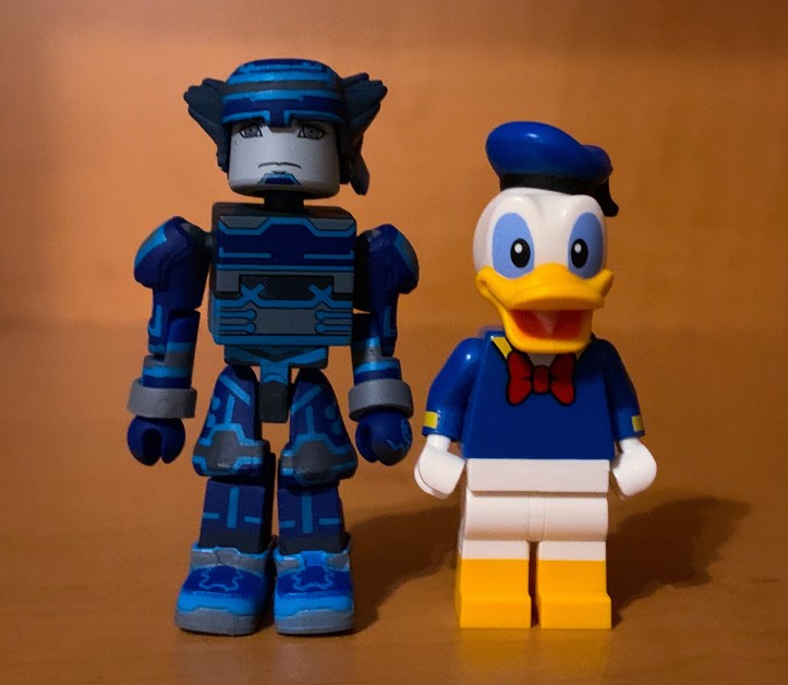 Here is a size comparison shot with the Minimates figure and a Donald Duck LEGO minifigure.