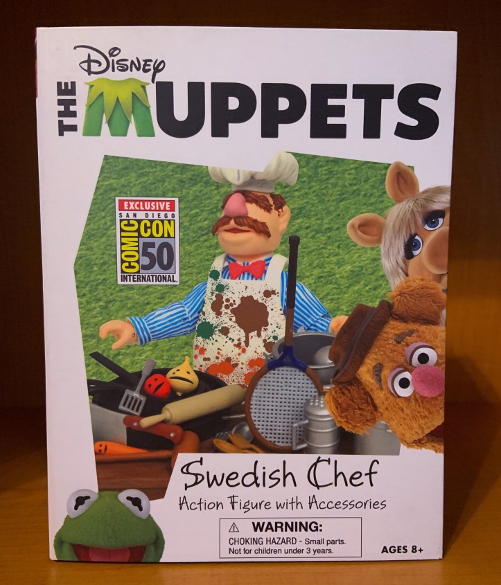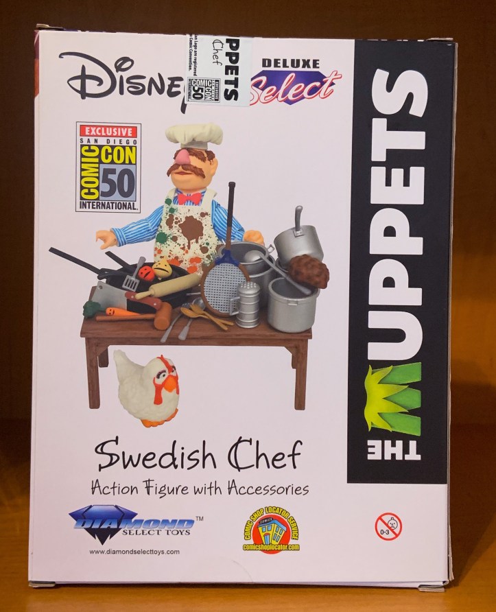 In the Summer of 2018, Diamond Select Toys released a deluxe figure pack of the Swedish Chef with his chef’s table and a ton of accessories. A limited edition Swedish Chef variant figure was then released at SDCC 2019. This variant was similar to the previously released Swedish Chef except his apron was messy and covered with food.