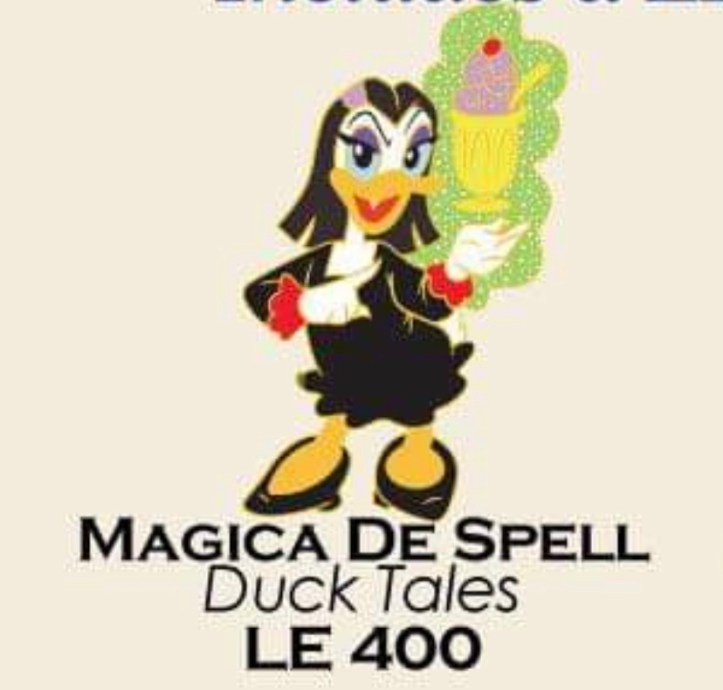 As you can see from the picture above, Magica De Spell is a limited edition of only 400 and comes with a ice cream sundae for only $16.50. This is the classic DuckTales version of Magica. It is unfortunate that this pin will be just a fantasy for most collectors who do not live close to Disney Studio Store Hollywood.