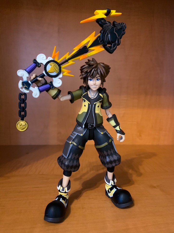 Sora looks slick in his yellow Guardian Form design that is accessible in Kingdom Hearts III when he wields the Hero’s Origin Keyblade. The Guardian Form Sora figure has multiple points of articulation.