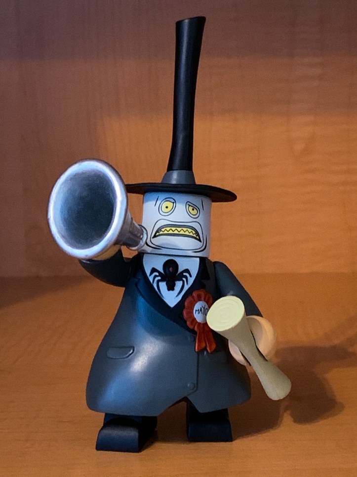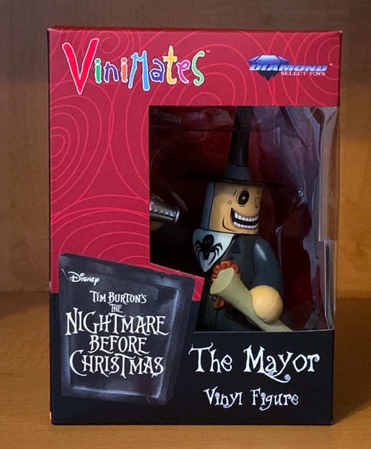 Today we will give you a look at the Mayor of Halloweentown’s Vinimates figure courtesy of Diamond Select Toys. The Mayor is part of Diamond Select Toys Nightmare Before Christmas Vinimates Series 1 along with Jack Skellington, Sally, and Oogie Boogie.