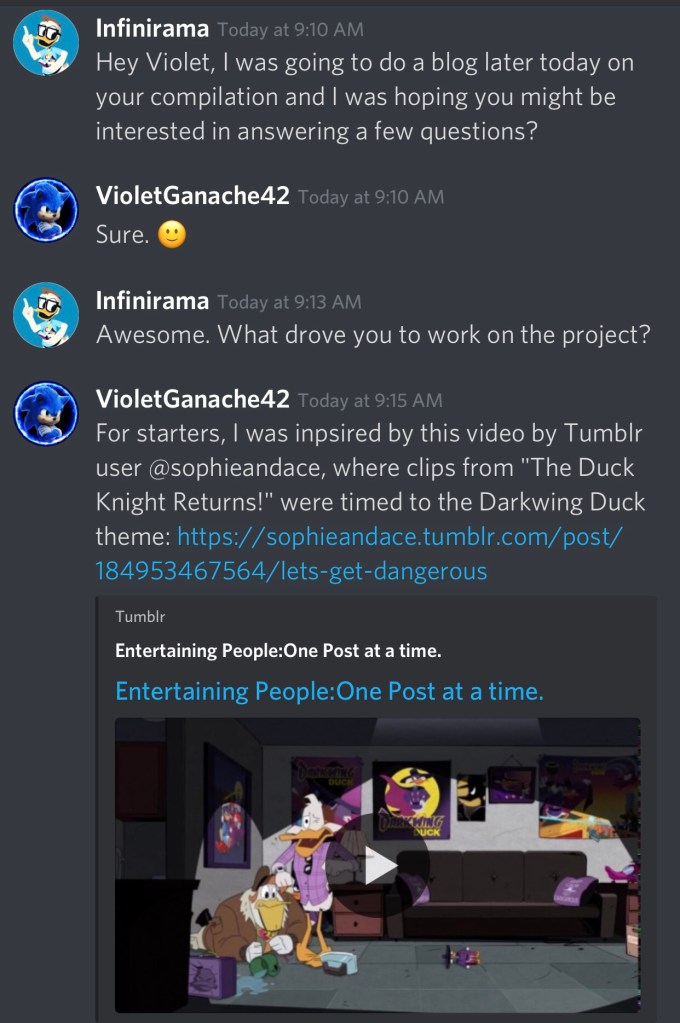 You can check out Sophie’s Darkwing Duck Compilation below.