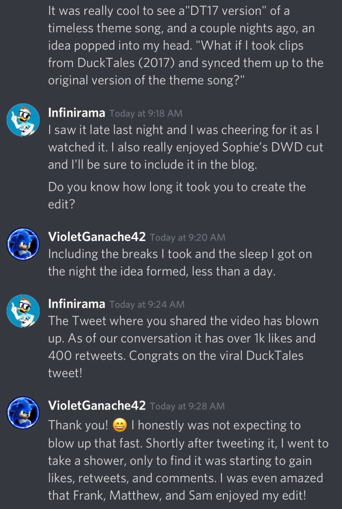 Twitter user @VioletGanache42 has created a compilation of DuckTales 2017 scenes to the original 1987 show’s intro, and it is amazing. Based on the popularity of the tweet we know that many of you have already seen it, but we often hear from readers of the blog who aren’t on social media. We did not want you all to miss out.